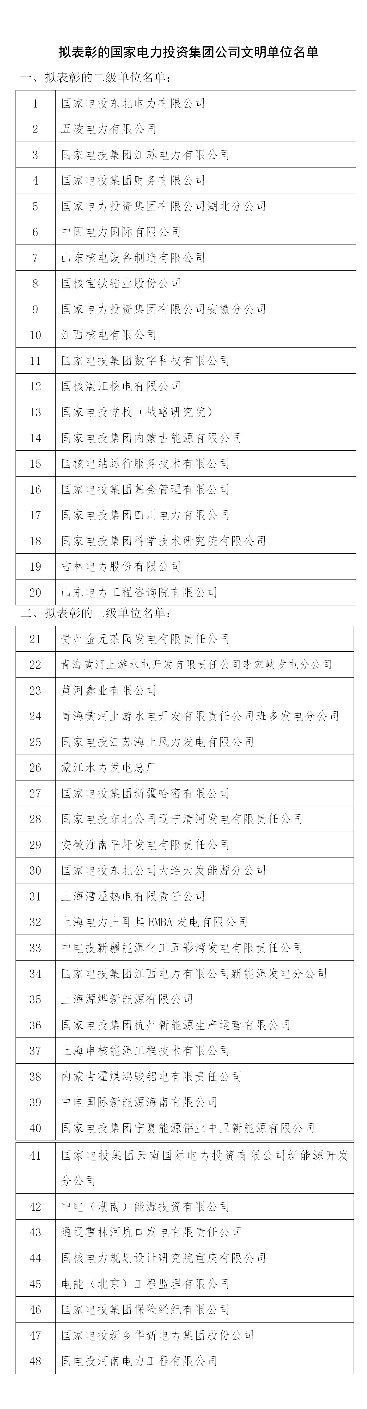 附件:擬表彰的國家電力投資集團公司文明單位名單