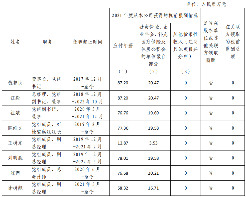 國家電力投資集團(tuán)有限公司企業(yè)負(fù)責(zé)人2021年度薪酬情況