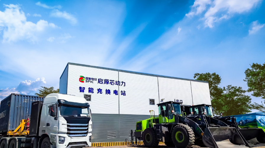 ▲國家電投“獨角獸”成長企業(yè)啟源芯動力研發(fā)生產的換電工程車輛及充換電站